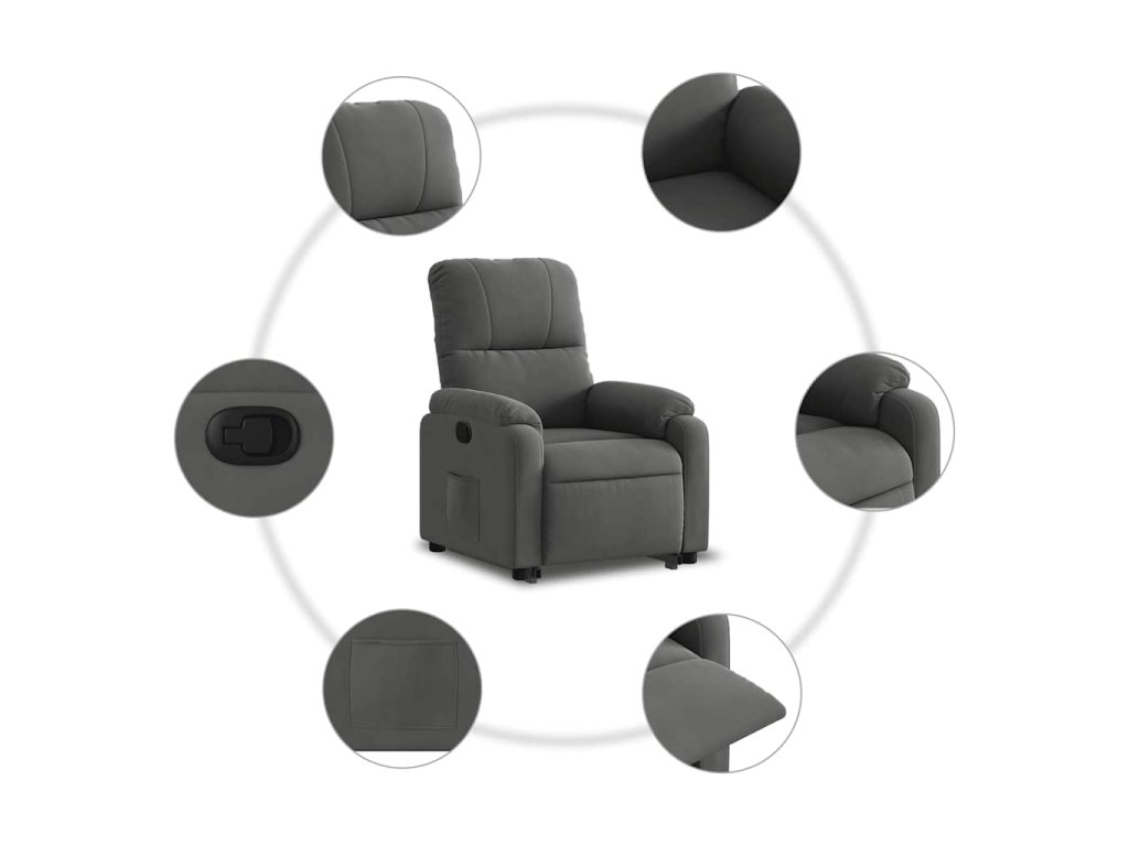 Zvedací polohovací křeslo tmavě šedé tkanina z mikrovlákna 3204931
