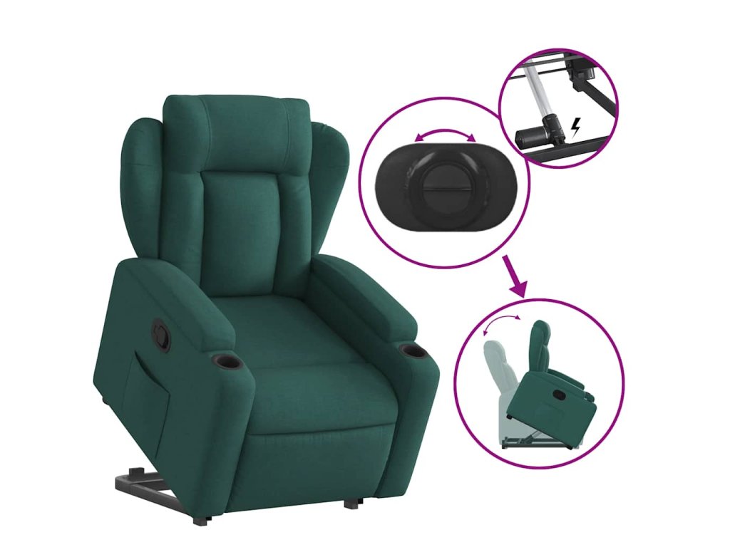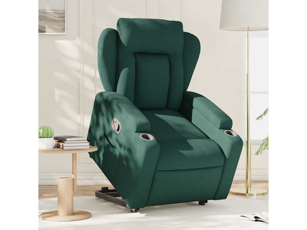 Zvedací polohovací křeslo tmavě zelené textil 3204488