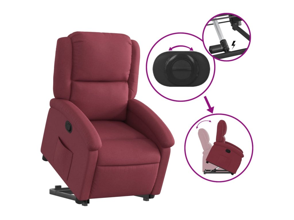 Zvedací polohovací křeslo vínové textil 3204167